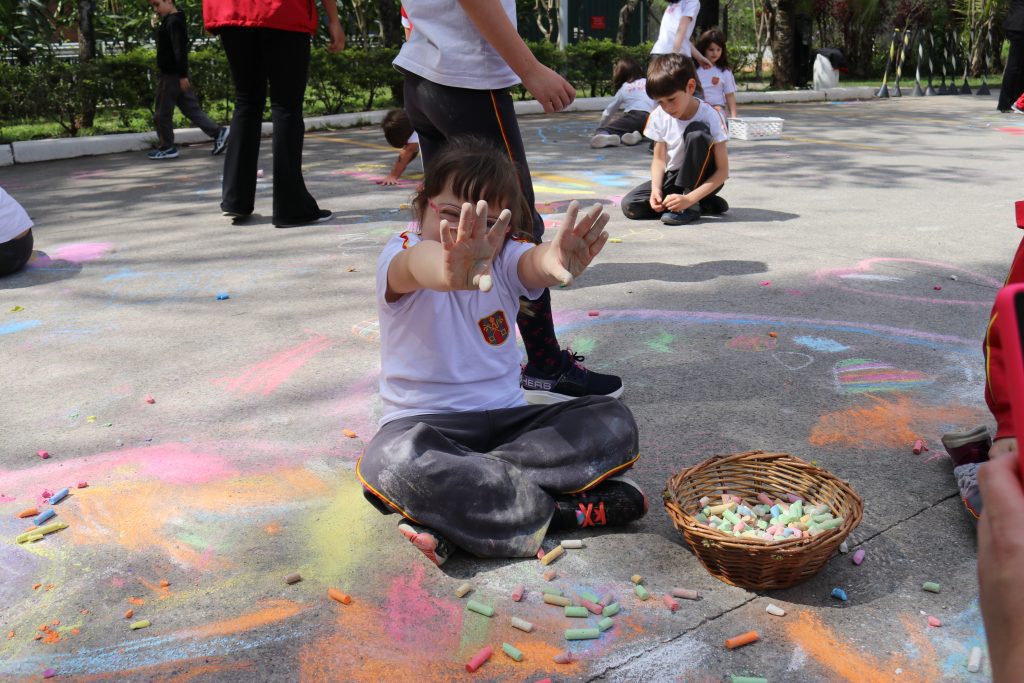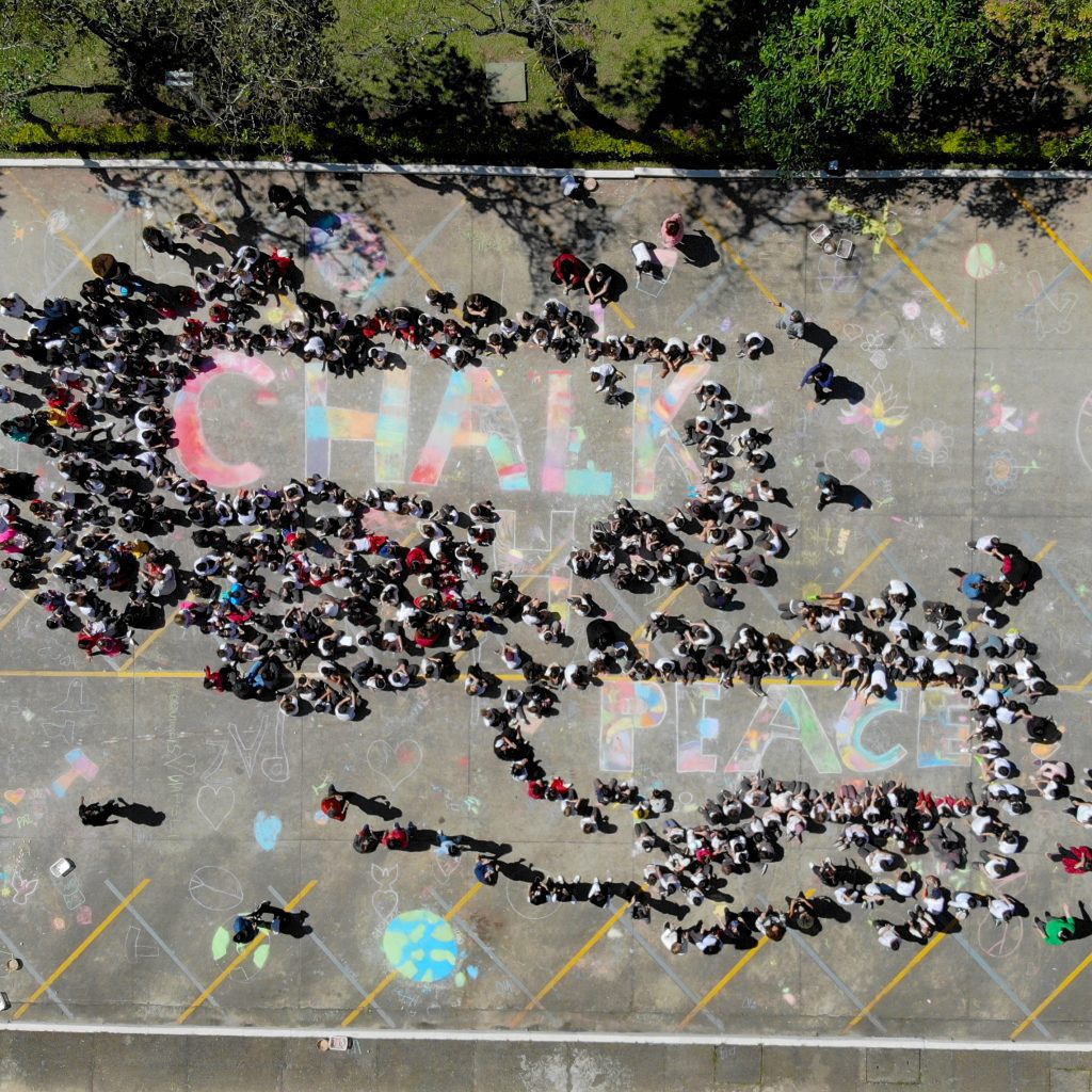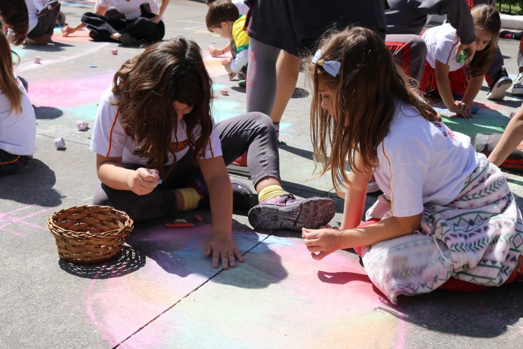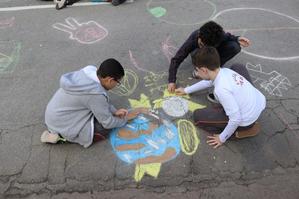 Nossos alunos participaram de mais uma edição do projeto Chalk 4 Peace, movimento criado nos Estados Unidos com o objetivo de propagar a paz e a arte por meio de mostras de jovens artistas que expressam, com giz, sua visão sobre a paz.