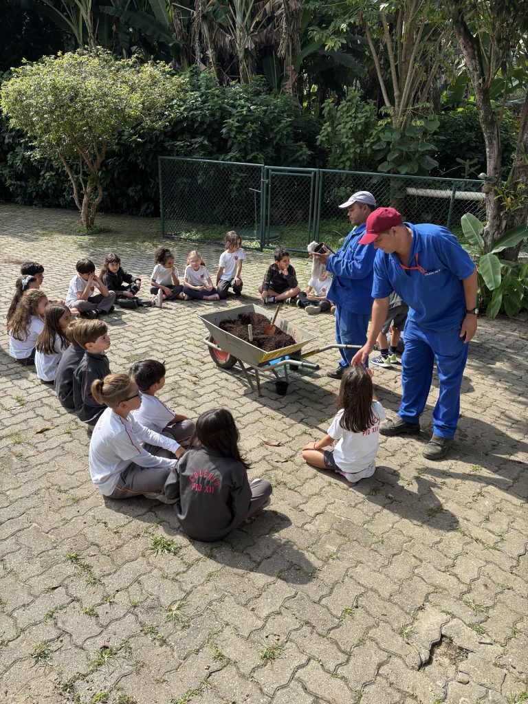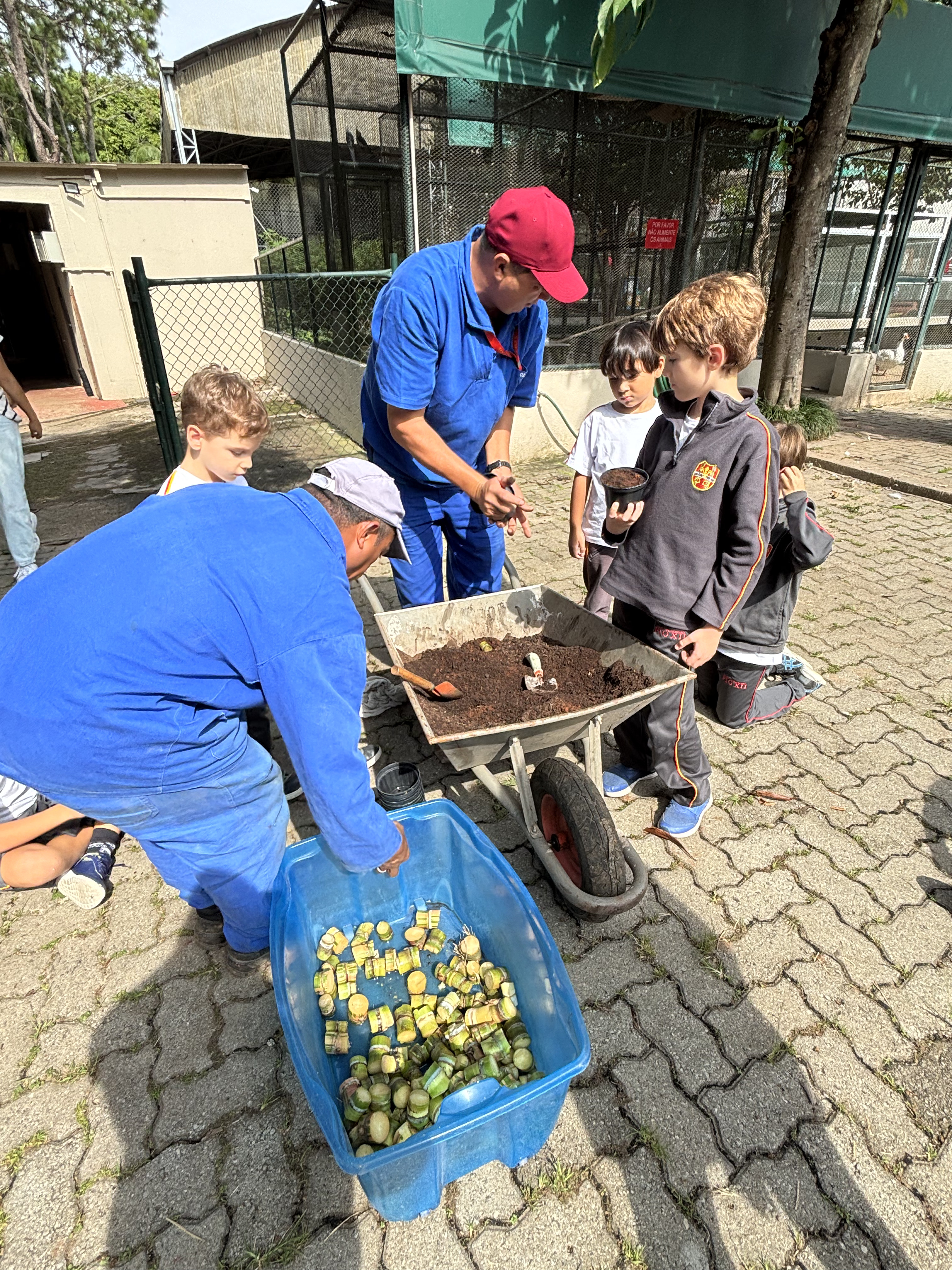 Um dos momentos mais significativos do projeto foi a aula de campo realizada no Sítio do Sol, em Cabreúva. Durante essa vivência, os alunos puderam mergulhar em saberes ancestrais e em tradições indígenas, ao mesmo tempo em que interagiam diretamente com a natureza. O contato com árvores centenárias, a escuta de histórias sobre o uso das plantas na alimentação e na medicina, e a vivência coletiva com os colegas no espaço rural ampliaram o repertório das crianças e fortaleceram a consciência ambiental por meio da experiência concreta. Essa imersão intensificou o vínculo afetivo dos estudantes com o planeta e reforçou a noção de pertencimento e cuidado como partes fundamentais da cidadania ecológica.