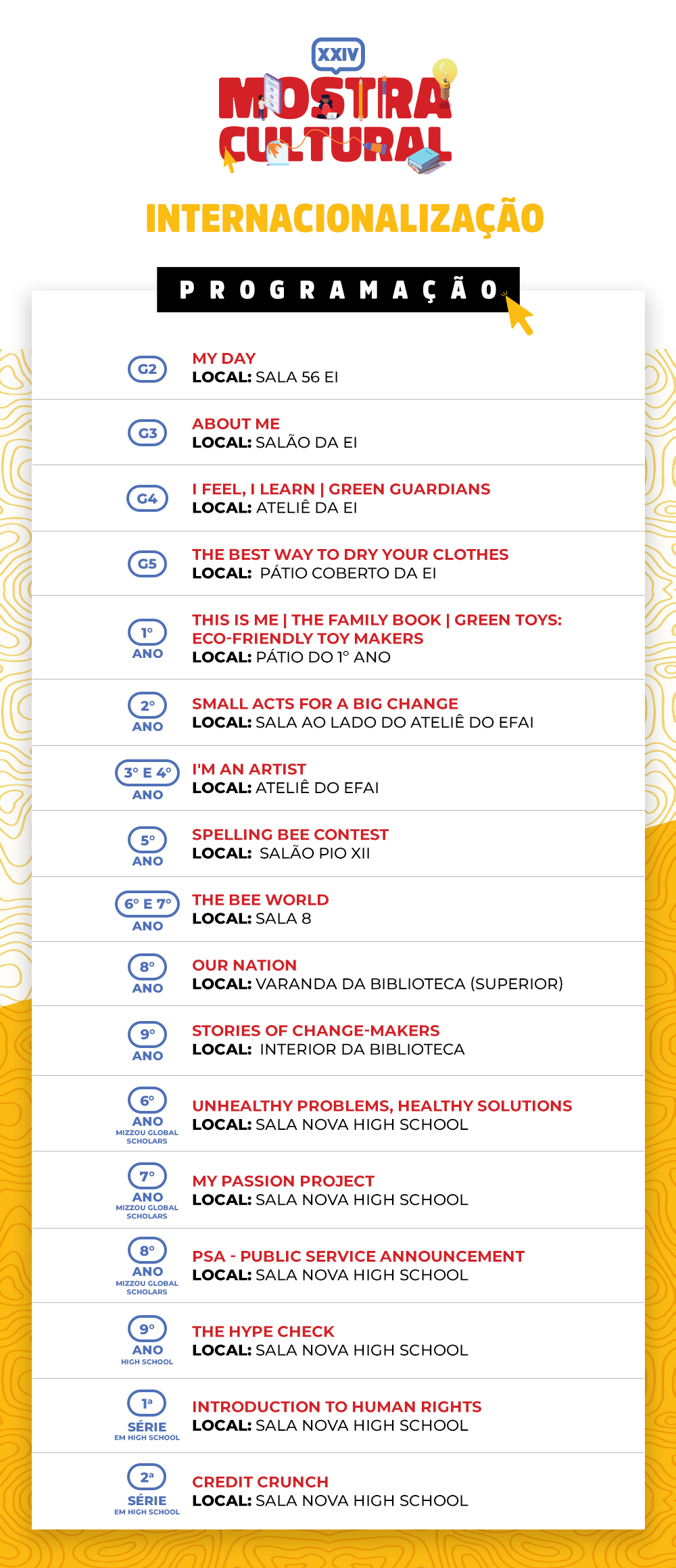 XXIV Mostra Cultural – Programação 3º a 5º ano EFAI